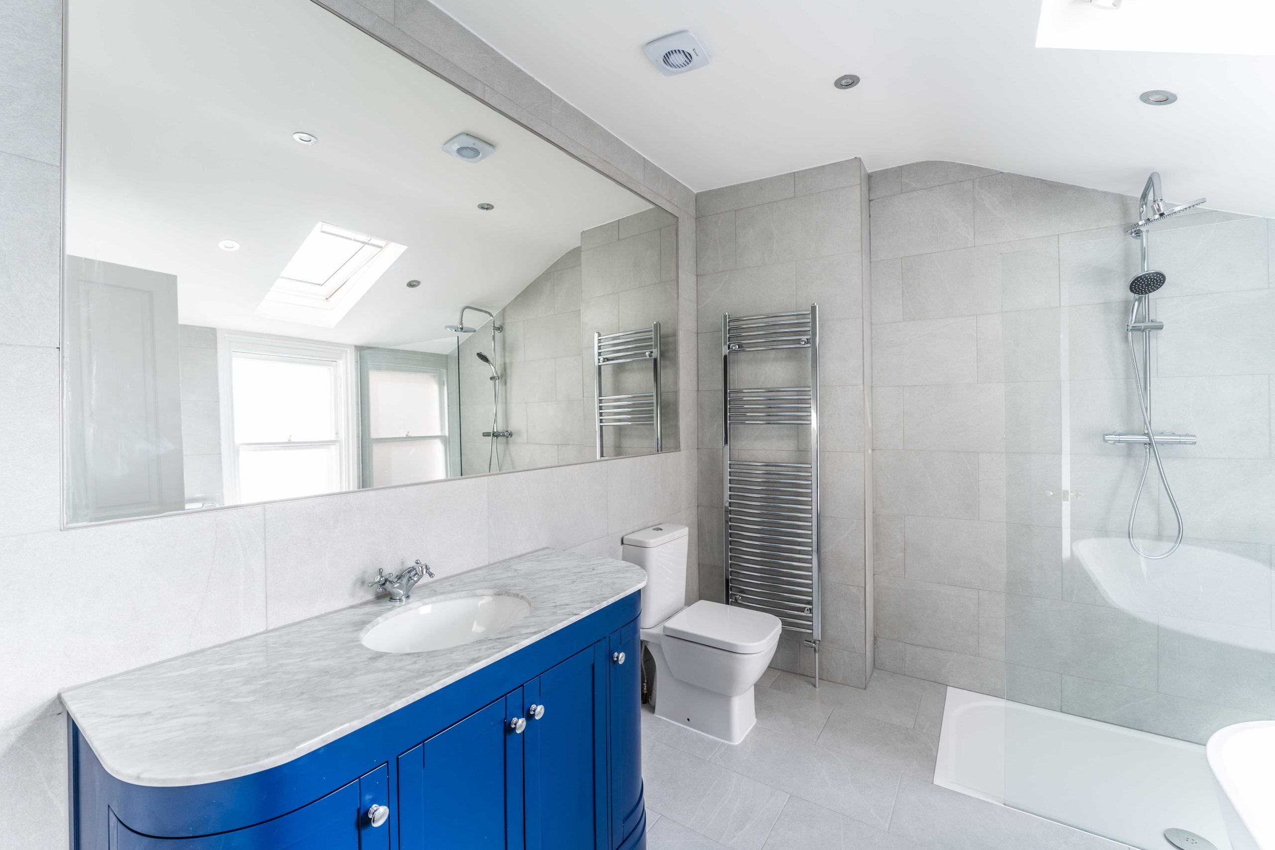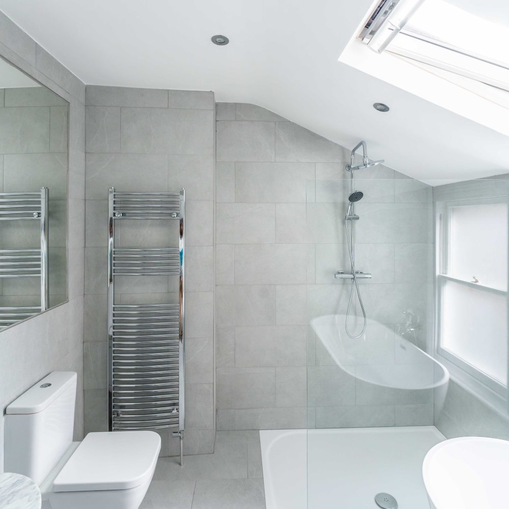 We carried out a full flat renovation, stripping out all existing fixtures and fittings to create a fresh canvas. The project included the installation of brand-new kitchens and bathrooms, the restoration of original windows, and the addition of a new pitched roof. The result is a modern, functional, and stylish living space with upgraded finishes throughout.